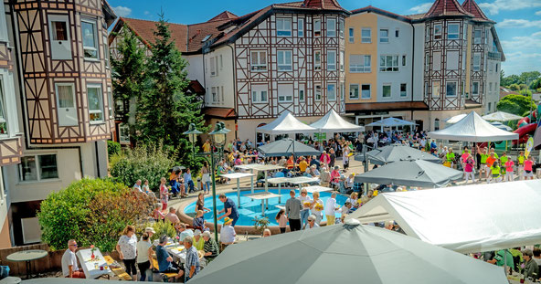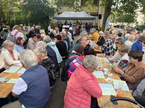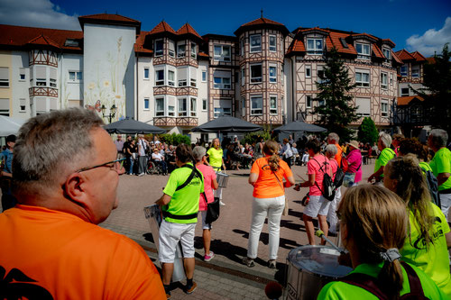 Am Sonntag, 24.08., ging es beim Sommerfest des Seniorenparks schwungvoll weiter. Rund 500 Gäste erlebten den Einzug der Samba-Gruppe „Bateria Caipirinha“. Passend zum sonnigen Wetter verteilte das Team gelbe Fächer mit Kultursommer-Logo. Das Programm reichte von Sitztanz und Landfrauen bis zu den Tanzteens des TV Bischofsheim, Alleinunterhalter Rolf Wittek und Sänger Giovanni Weisheit.
