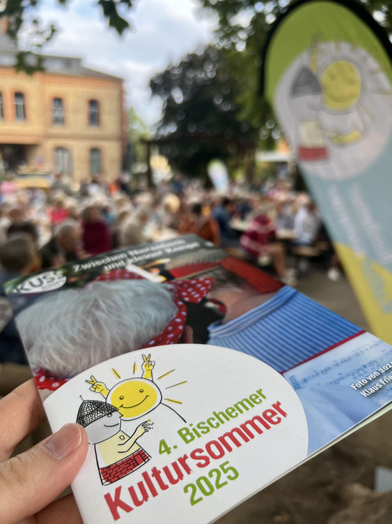 Der 4. Bischemer Kultursommer bot letztes Wochenende zwei unvergessliche Veranstaltungen. Am Samstag, 23.08., lud die Kulturkommission in den Rosengarten zum Mitsingabend „Zwischen Nierentisch & kleiner Kneipe“. Über 300 Besucher sangen gemeinsam mit dem Projektchor 18 Kultlieder der 60er- und 70er-Jahre – von „Immer wieder geht die Sonne auf“ bis „Er gehört zu mir“. Dank eigens gedruckter Liederhefte konnte jeder einstimmen. Dirigiert von Opernsängerin Nora Weinand und begleitet von Stefan Finkenauer entstand eine Atmosphäre, die viele an Jugendtage erinnerte. Heike Soltau, Karin Wehner und Christine Stotz führten unterhaltsam durch das Programm, sorgten mit witzigen Einlagen für Lacher und erhielten großen Beifall. Besonders gefeiert wurde Karins Intro zu „Eine neue Liebe ist wie ein neues Leben“. Zum stilechten Rahmen gehörte ein Nierentisch vor dem Chor sowie der gelbe BÄM-Firetruck, der als Bar für kühle Getränke diente. Zum Abschluss gab es die Zugaben „Knallrotes Gummiboot“ und „Die kleine Kneipe“.