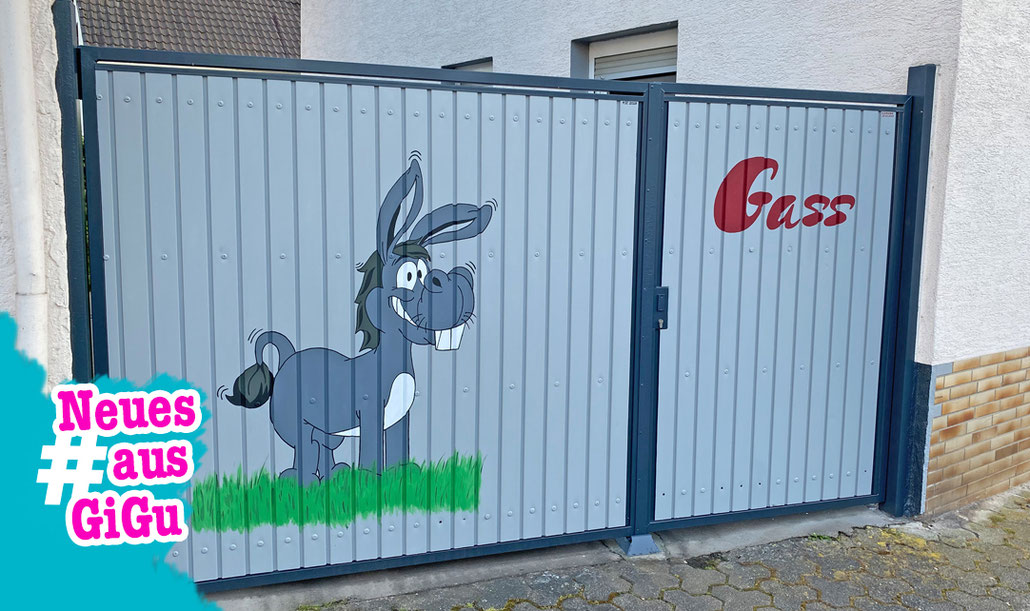 Meine Auseinandersetzung mit diesem Straßennamen begann übrigens auf dem Damm zwischen Ginsheim und Gustavsburg. Ich fuhr gerade von Ginsheim mit dem Rad ins Büro nach Gustavsburg als mir ein Mann zurief: „Ich habe einen Esel auf mein Hoftor gemalt“. Verdutzt blieb ich stehen und hörte weiter zu. „Ich wohne in der Eselsgass“, sagte er. „Auf meinem Tor grüßt jetzt ein freundlicher Esel und das Wort »Gass«. Wäre das nicht was für die Zeitung?“, fragte er.