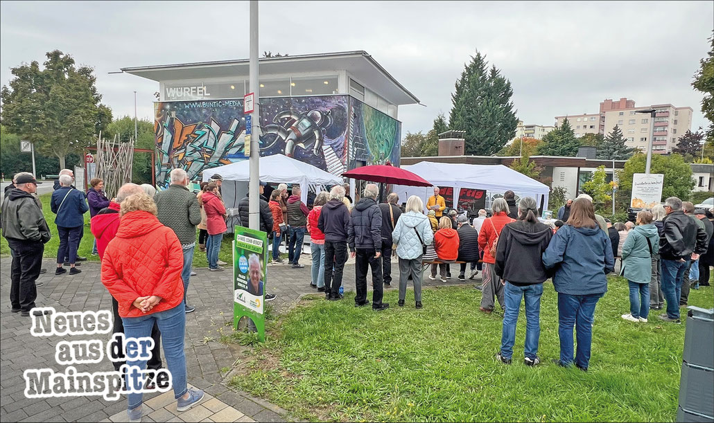 Mit rockigen Klängen der Frankfurter Band „dEFFtig“, die Klassiker von Udo Lindenberg bis Herbert Grönemeyer spielten, wurde der Platz vor dem Kunst-Würfel zur Bühne. Dazu brutzelten Würstchen auf dem Grill. EDEKA Lucchese und der benachbarte Tegut-Markt hatten Leckereien aus allen Regionen gestiftet. Sie konnten gegen Lose à 1 Euro gewonnen werden – „Jedes Los gewinnt!“, versprach Volker mit einem Lächeln, das ansteckend wirkte.
